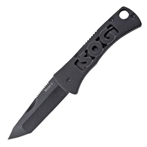 - Though I can deal with the cheesy "SOG" on one half of the handle, one wonders why it's not on the other side; carveouts on the other half of the handle would also usefully lighten the weight a bit more