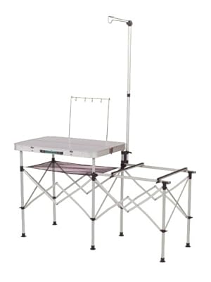 The utility of this product is astounding. The stove shelf is situated at the perfect height. The table is the perfect size and at the perfect height. Added utilities like the net to hold veggies and the lantern holder just put this one over the top. The caveat is to be careful setting it up and taking it down. Slow down and think about what you are doing- the lattice frame structure is made of aluminum which is lightweight but you can see how it would bend if you forced it.