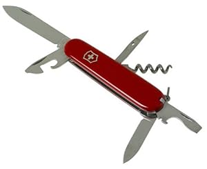 This little wonder has a large and small knife, a corkscrew, a punch, a can opener with a flat blade screwdrive on the end, a bottle opener with a flat blade screwdriver on the end and what purports to be a wire stripper on the side (I have never used that), a key ring, tweezers and a toothpick. This knife is water resistant and made of high quality components.